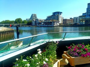 It is surprisingly peaceful, despite being moored on the opposite side of the river from the bustling town centre of Kingston upon Thames. The summer months are busier on the river with a constant stream of cruisers, canal boats, hire boats, and paddle boarders. The noise is one of fun, of people enjoying themselves.